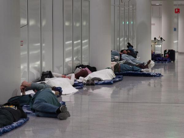 Menschen ruhen sich am Flughafen München aus.